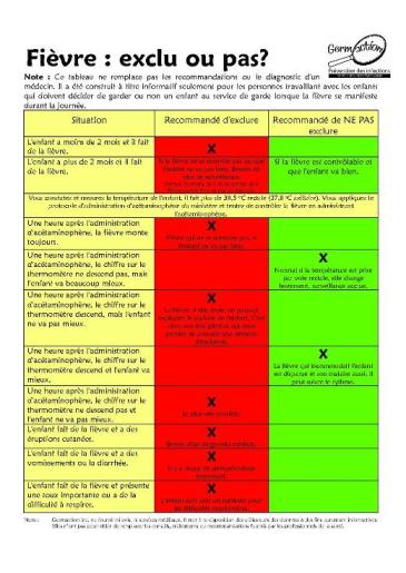 Mots-clés : collection affiches exclusion, enfant malade, guides décision, critères exclusion, gastro, fièvre, infection, service garde, éducatrice, CPE, RSGE, protocoles santé